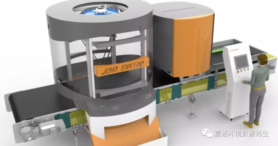 這是一款完全知識產權屬于嘉諾環境(JONO-AI)的智能分選機器人,目前主要用于固廢回收處理線中塑料膜,PET瓶,紙板,易拉罐,泡沫板的分揀。適用于生活垃圾、建筑裝修垃圾、可回收垃圾等等各類垃圾的精細分選的應用。