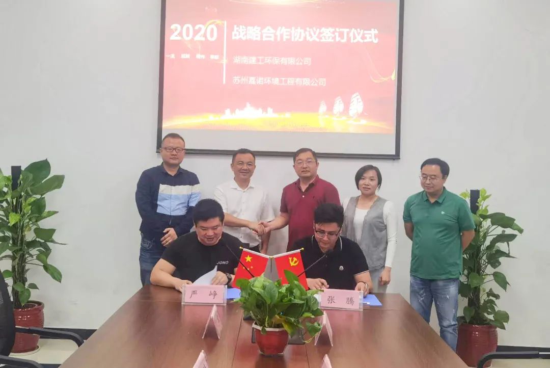 9月17號(hào)下午,湖南建工環(huán)保有限公司(以下簡稱“湖南建工環(huán)保”)與蘇州嘉諾環(huán)境工程有限公司(以下簡稱“我司”)舉行簽約儀式。湖南建工環(huán)保董事長徐劍、副總經(jīng)理張騰、副總經(jīng)理胡美霞、固廢運(yùn)營部部長喻杰與我司董事長袁靖、設(shè)計(jì)研究院副院長嚴(yán)崢、湖南區(qū)域經(jīng)理仇佳出席簽約儀式。湖南建工環(huán)保副總經(jīng)理張騰,我司設(shè)計(jì)研究院副院長嚴(yán)崢分別代表雙方簽約。